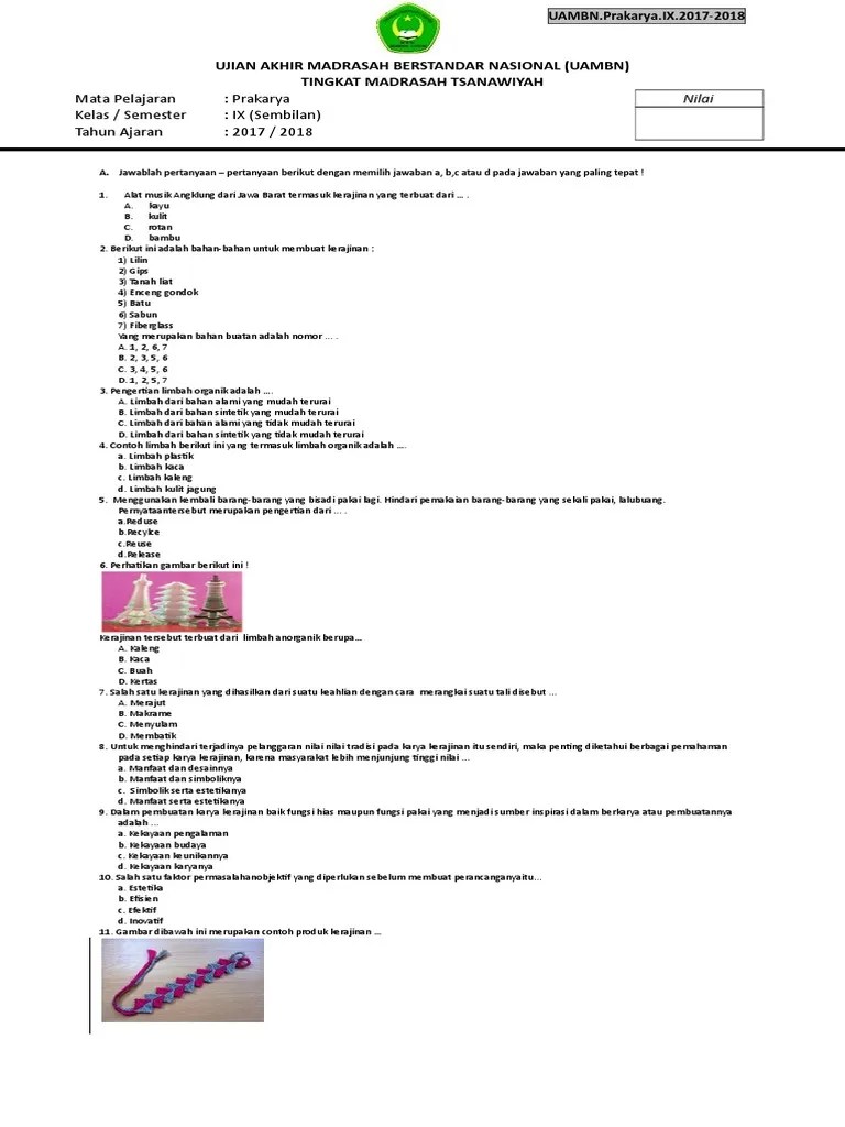 Download Soal Usbn Prakarya Kelas 9 / Soal Pas Prakarya Kelas 9 Kurikulum 2013 Smp Mts Soal Pelajaran / Soal ujian sekolah prakarya smp mts kurikulum 2013 ini untuk membantu belajar peserta didik kelas 9 smp/mts dalam menghadapi ujian sekolah .. Nah bagi bapak dan ibu guru, pelajar smp kelas 9 yang membutuhkan soal dan kunci jawaban ujian sekolah prakarya smp kurikulum 2013 tahun . Kunci jawaban lks prakarya kelas 11 semester 2 kurikulum 2013 … Sahabat pendidikan, dalam memasuki persiapan ujian sekolah maka . Soal usbn prakarya smp / mts tahun 2020 dan kumpulan contoh latihan soal . Download soal uaspat prakarya kwu kelas 11 semester 2 kurikukulum 2013.